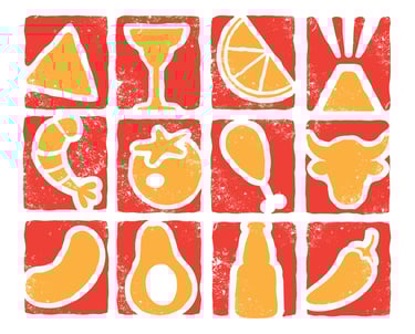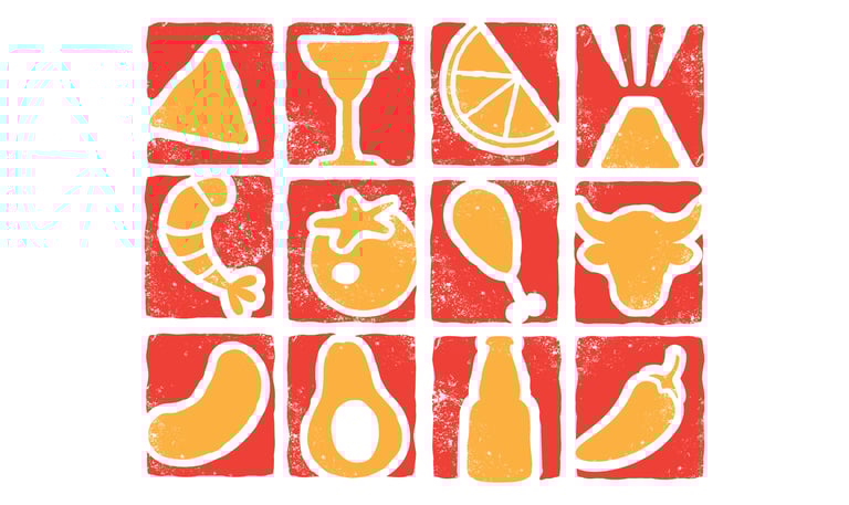 Brand identity system and style guide developed for El Colima, including custom iconography designed for use across food menus and printed materials.